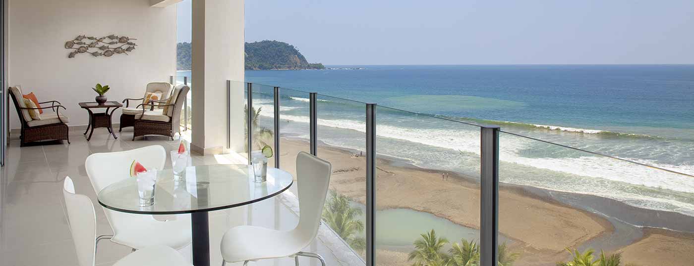 Diamante del Sol is a modern and luxurious oceanfront condominium in the heart of downtown Jaco Beach. Gourmet kitchen with stainless steel appliances and granite countertops is perfect for relaxing after a fun-filled day at the beach. 4 master suites with a full ensuite bathrooms, flat screen televisions, and wireless Internet will keep you coming back. Resort-style living includes staffed security, housekeeping and onsite management.