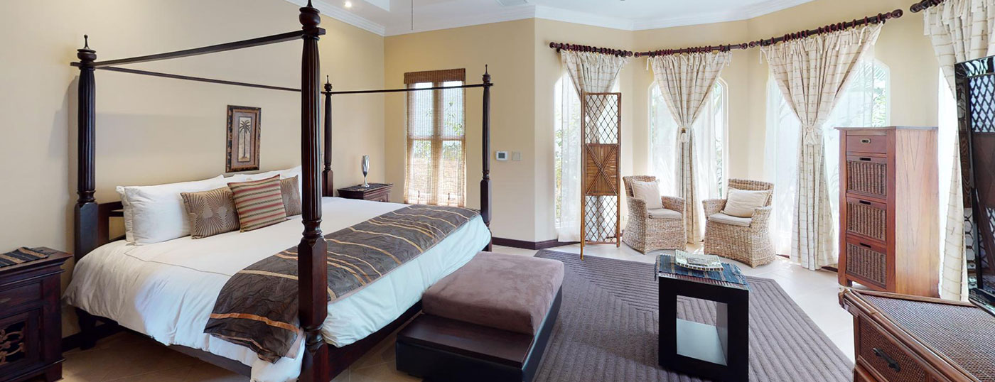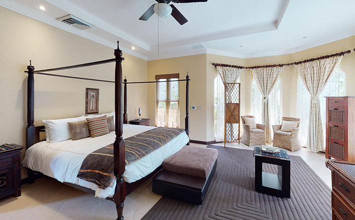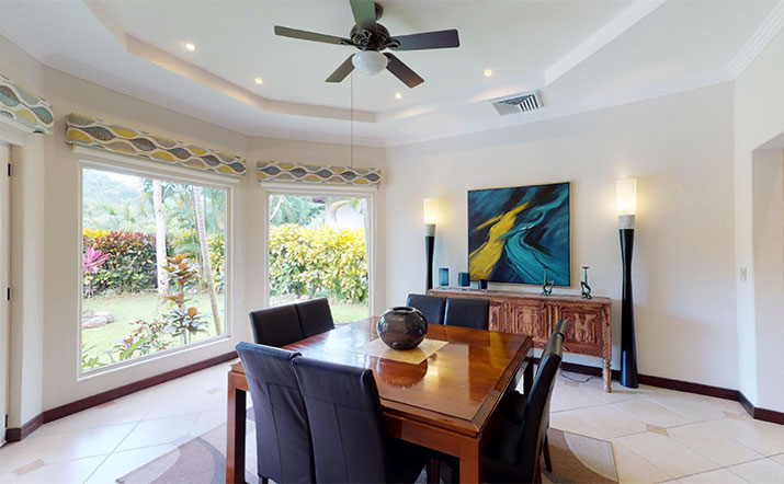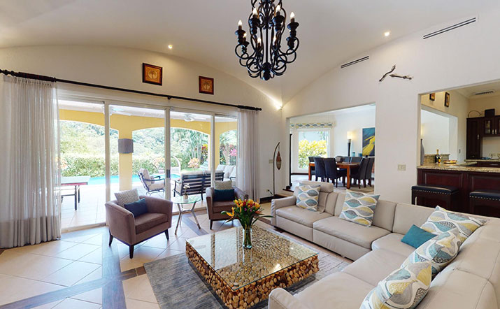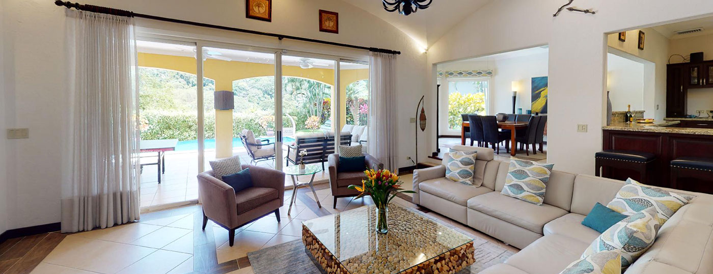 Casa Africana offers 5,900 square feet of interior living space and large covered terraces with views of the fairway and Herradura Bay. Amenities include a free-form swimming pools, a large game room with championship pool-table, barbecue area and lush landscaping.