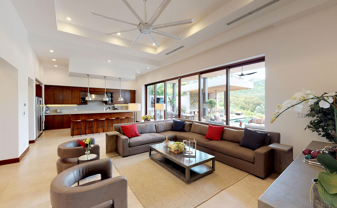 Situated within the Eco Golf Estates Community of Los Sueños Resort, Costa Rica, Casa Aqua is a grand, luxurious vacation home, built for entertainment and leisure. Recently completed Casa Aqua is the newest home in the resort featuring heavenly beds and bedding, black out curtains in every room, large spacious bedrooms and bathrooms, and an outdoor entertainment area and infinity pool that is second to none in the resort.
