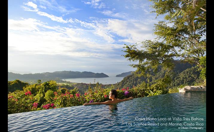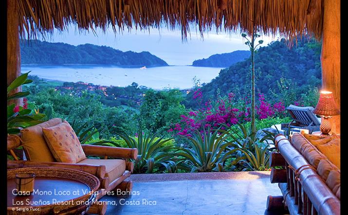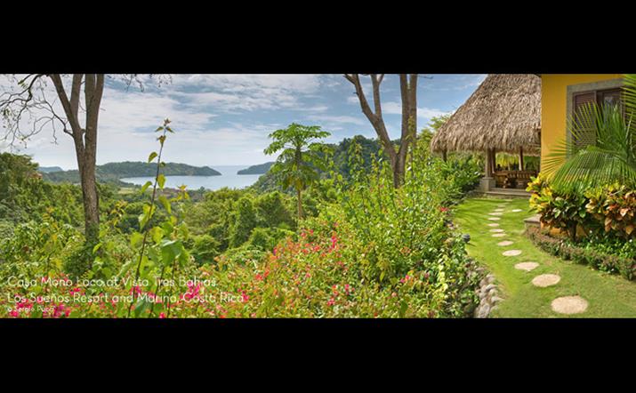 Casa Mono Loco has earned it's reputation as one the most exotic and romantic Shangri La spots in all of Costa Rica. Located in the exclusive Los Sueños residential section of Vista Tres Bahias, Casa Mono Loco was designed by Costa Rica's renowned architect Ronald Zurcher, architect of both The Los Sueños Marriott and the Four Seasons Hotel. This unique and magical compound has one of the most commanding views in all of Los Sueños and enjoys exceptional privacy, surrounded by jungle green space that is teeming with Costa Rica's most beautiful birds and wildlife. Three air-conditioned master bed/bath, including a private suite. Every room has a spectacular ocean view.