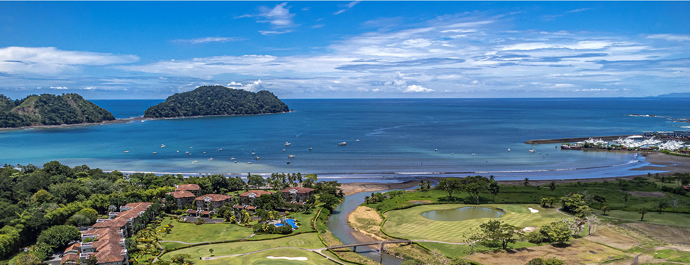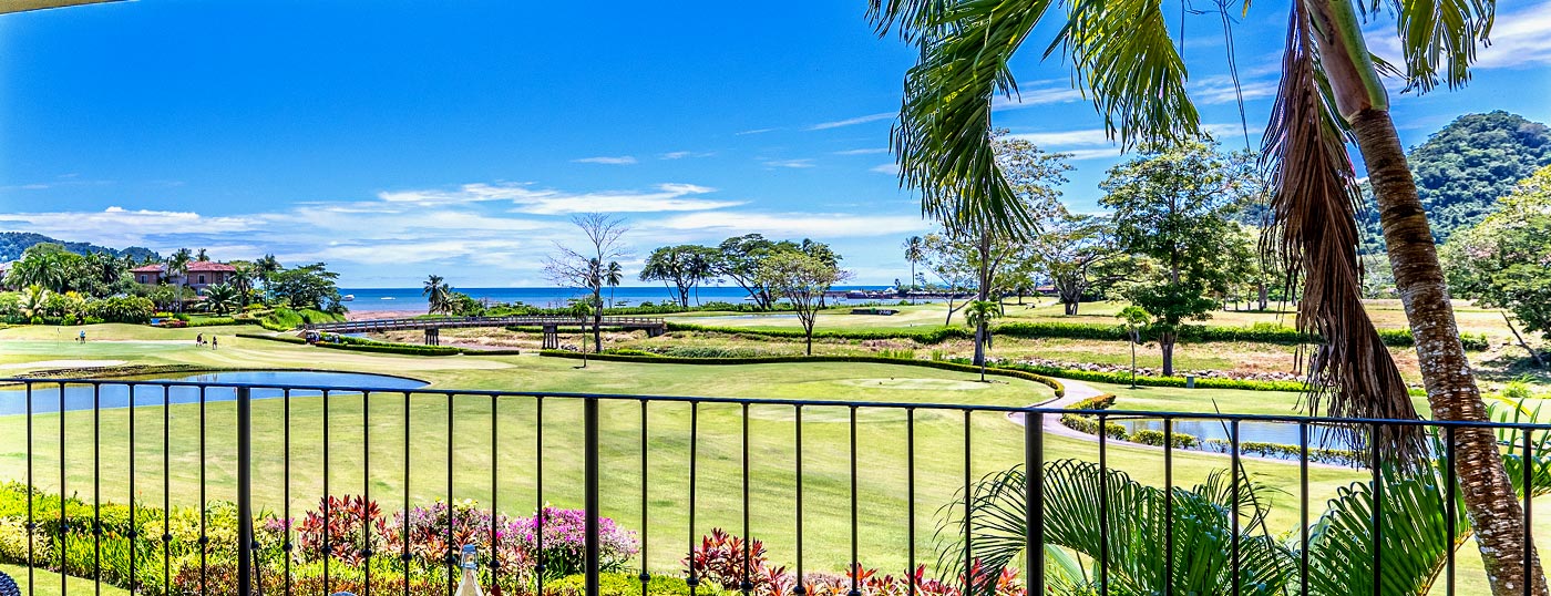 Covered terraces and balconies offer comfortable vantage points from which to take in the panoramic views of the fairway, marina and the ocean views of Herradura Bay.