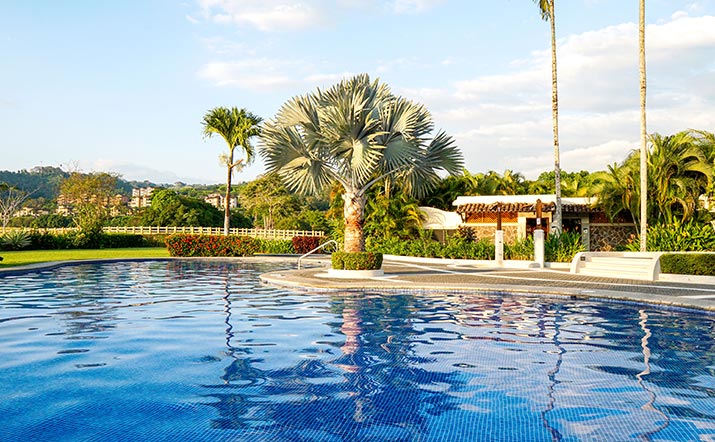 The Del Mar Condominiums feature a striking contrast between Mediterranean architectural design and the delicate landscape that characterizes this community. Del Mar is a haven for recreation and active living within Los Suenos.