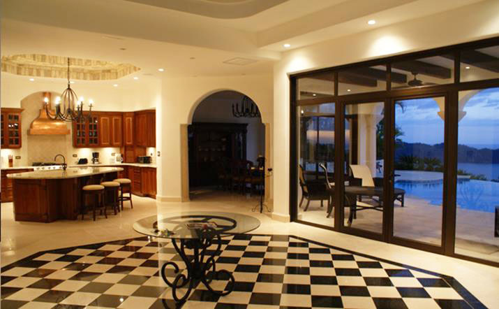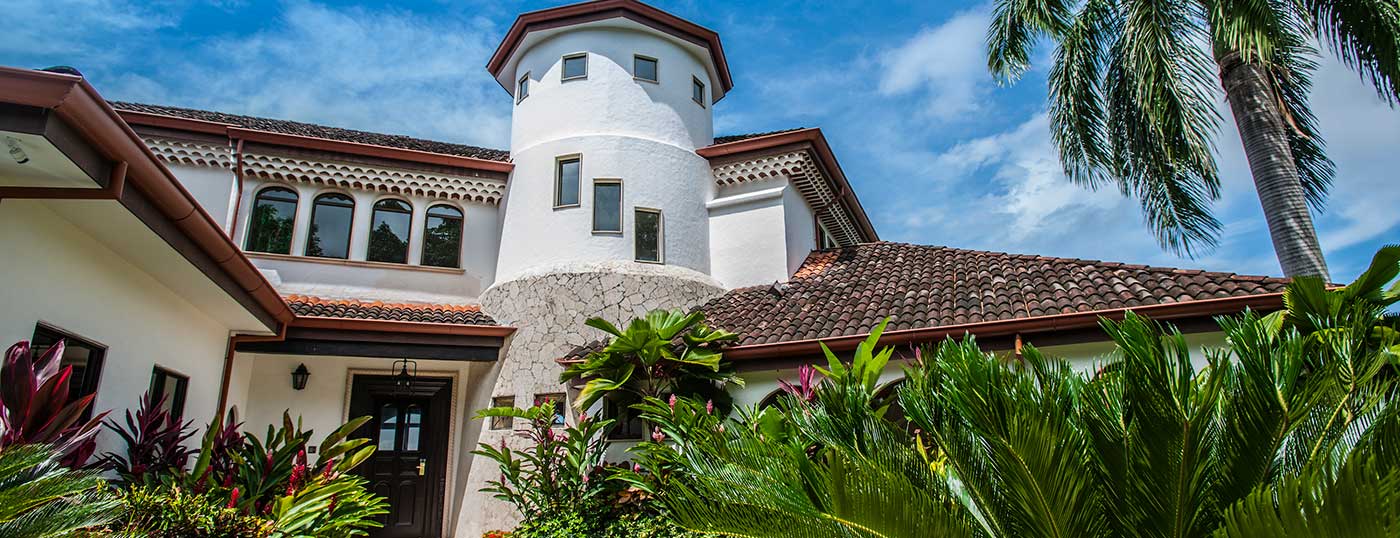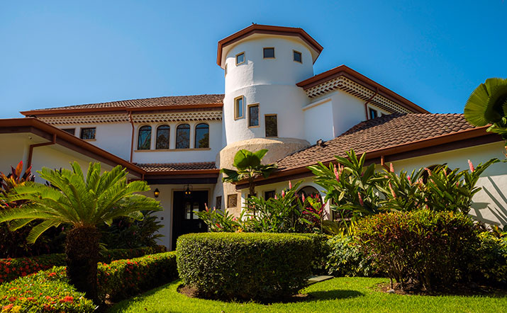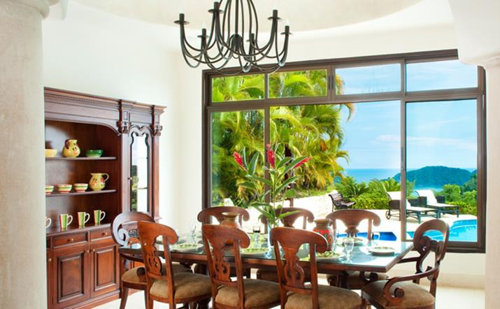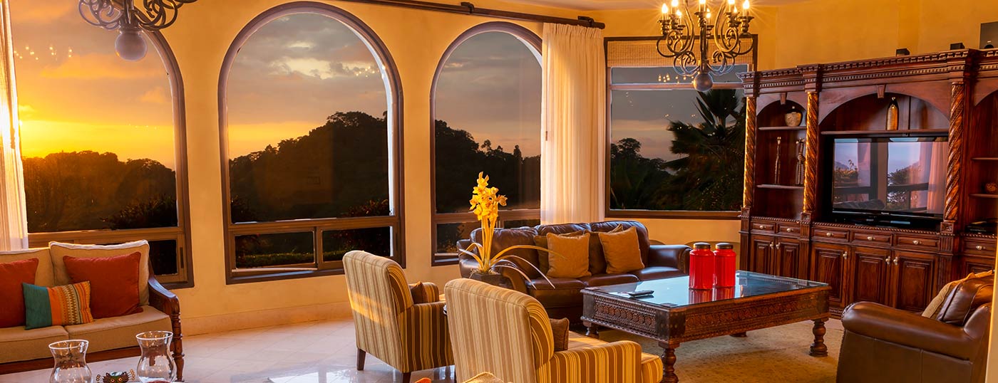 Casa Puesta del Sol is a beautiful five bedroom home located in the mountain top neighborhood of Vista Tres Bahias in Los Suenos Resort. With an elegant design and stunning panoramic vistas of the three different bays and the rainforest this home is ideal for families and groups that want to have a private house within Los Sueños with privacy and the best views.
