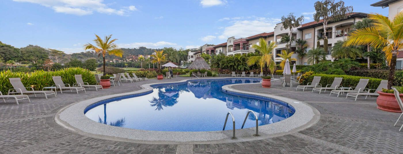 The Del Mar Condominiums feature a striking contrast between Mediterranean architectural design and the delicate landscape that characterizes this community. Del Mar is a haven for recreation and active living within Los Suenos.
