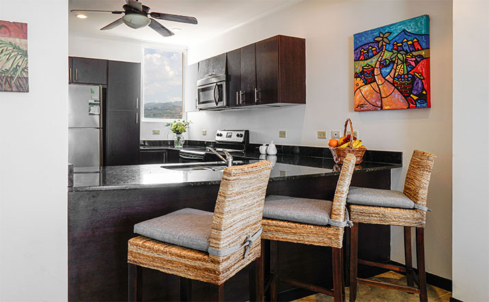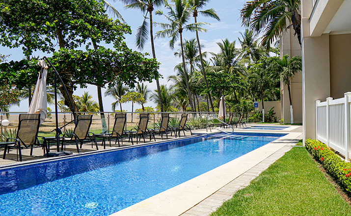 The Palms Jacó offers the most spectacular ocean views on Jacó Beach! Located at the north end of the beach, every unit has great sunset views, as well as sweeping views of the rest of Jacó Beach to the south. The Palms Jacó features a beachfront swimming pool and direct access to the beach. You'll also enjoy some of the amenities of Croc's Casino Resort with resort pool privileges . . . it doesn’t get better than this.