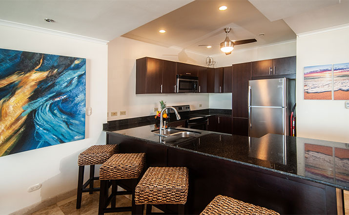 Steps from Jaco Beach, home to world famous surfing, this condo includes the use of 2 pools: one private oceanfront condo pool for a quiet beachfront experience, as well as full access to the largest pool on the beach next door at the Crocs Resort & Casino for a livelier experience. In addition, it is an easy walk or very short cab ride to town with a wealth of delicious local and international restaurant and shopping options.